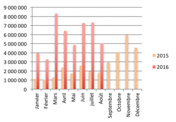 Le montant collecté s’élève à près de 46,5 millions d’euros sur le début de l’année 2016, soit une multiplication par 3,3 par rapport à août 2016.
