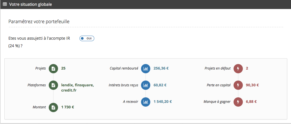 Entre autre, je compare le total des intérêts reçus avec le CRD et il me donne le risque que j’ai sur les plateformes.